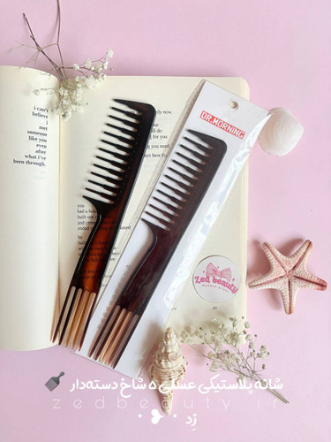 شانه پلاستیکی عسلی ۵ شاخ دستهدار Dr.Morning مناسب انواع مو