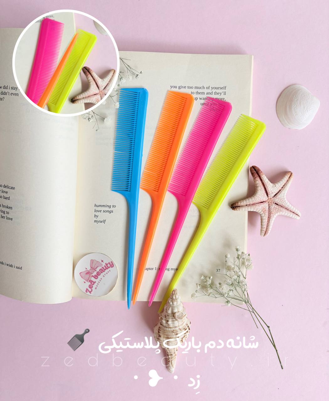 شانه دُمباریک پلاستیکی مناسب فرق باز کردن، رنگ، مش و شینیون