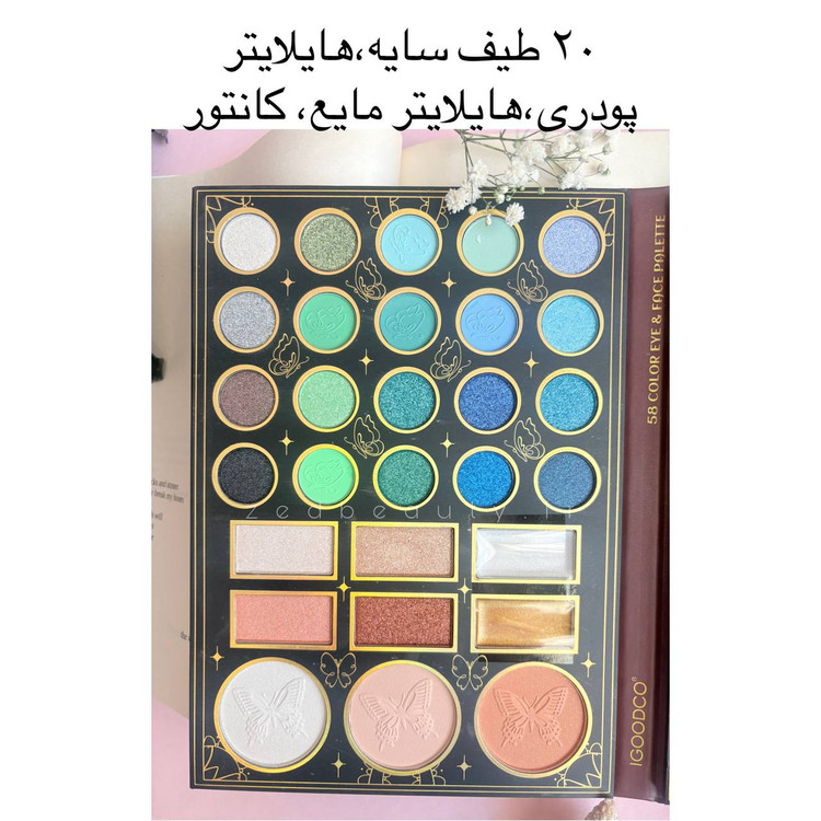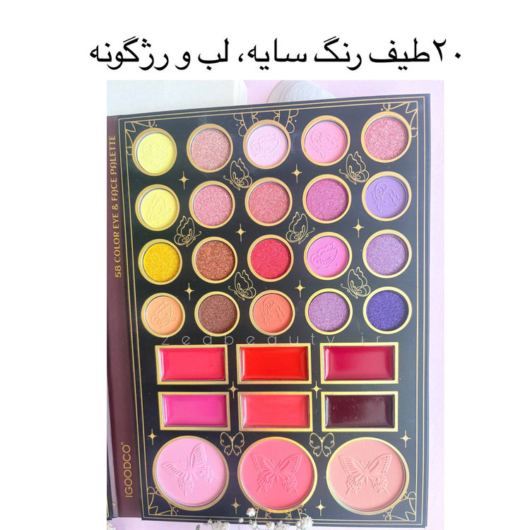 پلت چندکاره آرایشی IGOODCO شامل مدل ۴۰ رنگ سایه رژلب و کانتور و رژگونه و هایلایتر