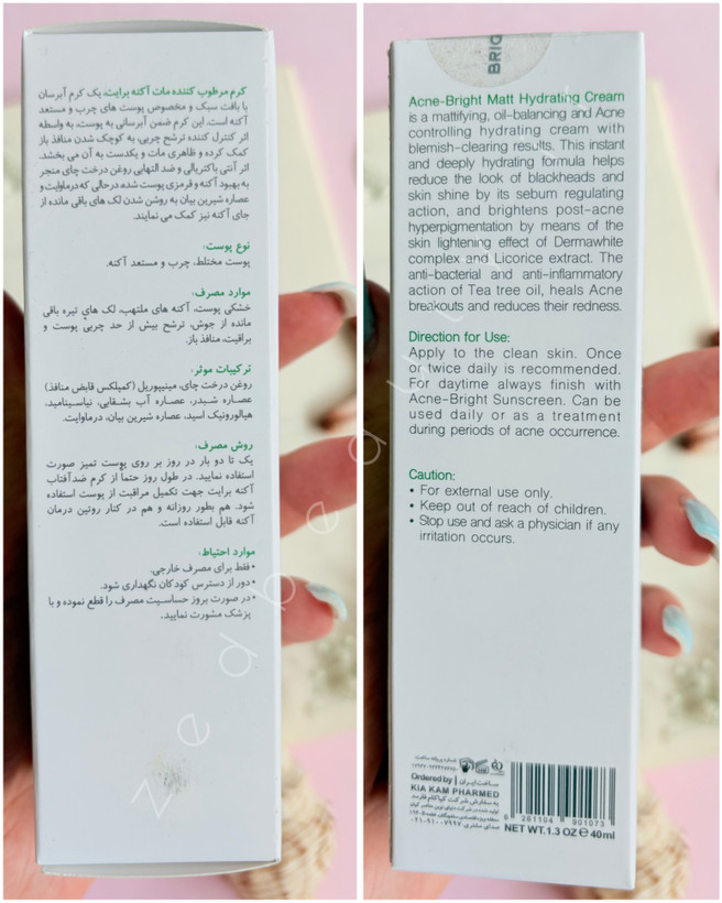 نوع محصول: کرم مرطوبکننده مات آکنه برایت