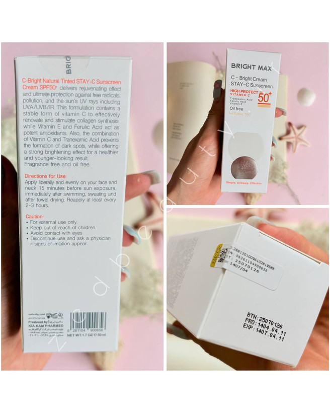 کرم ضد آفتاب رنگی برایت مکس SPF50 حاوی ویتامین C – 50 میلیلیتر