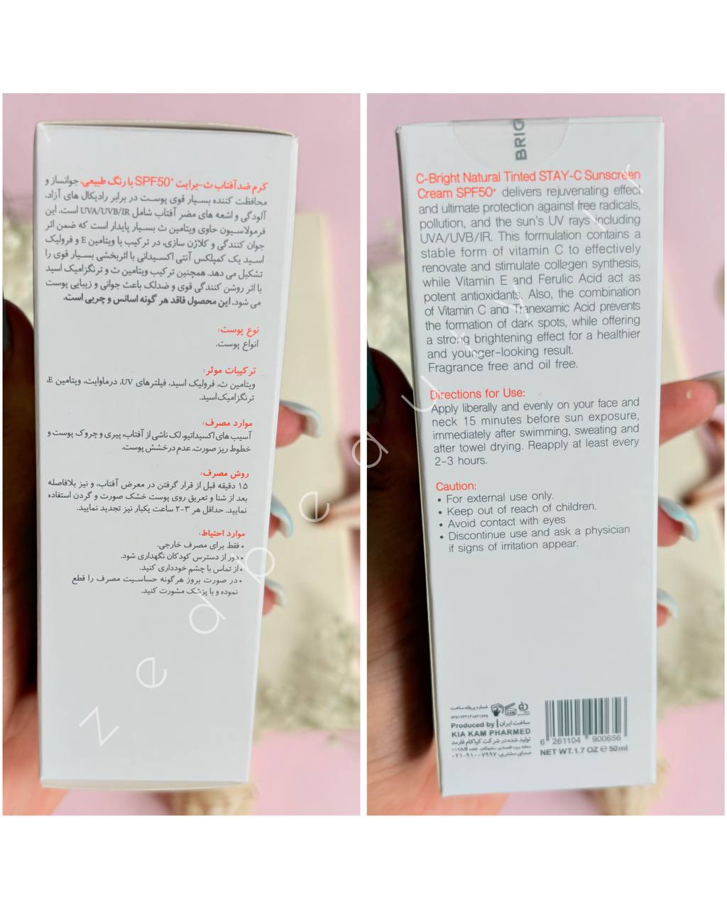 کرم حاوی ویتامین C هست که به روشن شدن و شفافیت پوست کمک میکنه و با SPF50، محافظت بالایی در برابر UVA و UVB فراهم میکنه 🌈