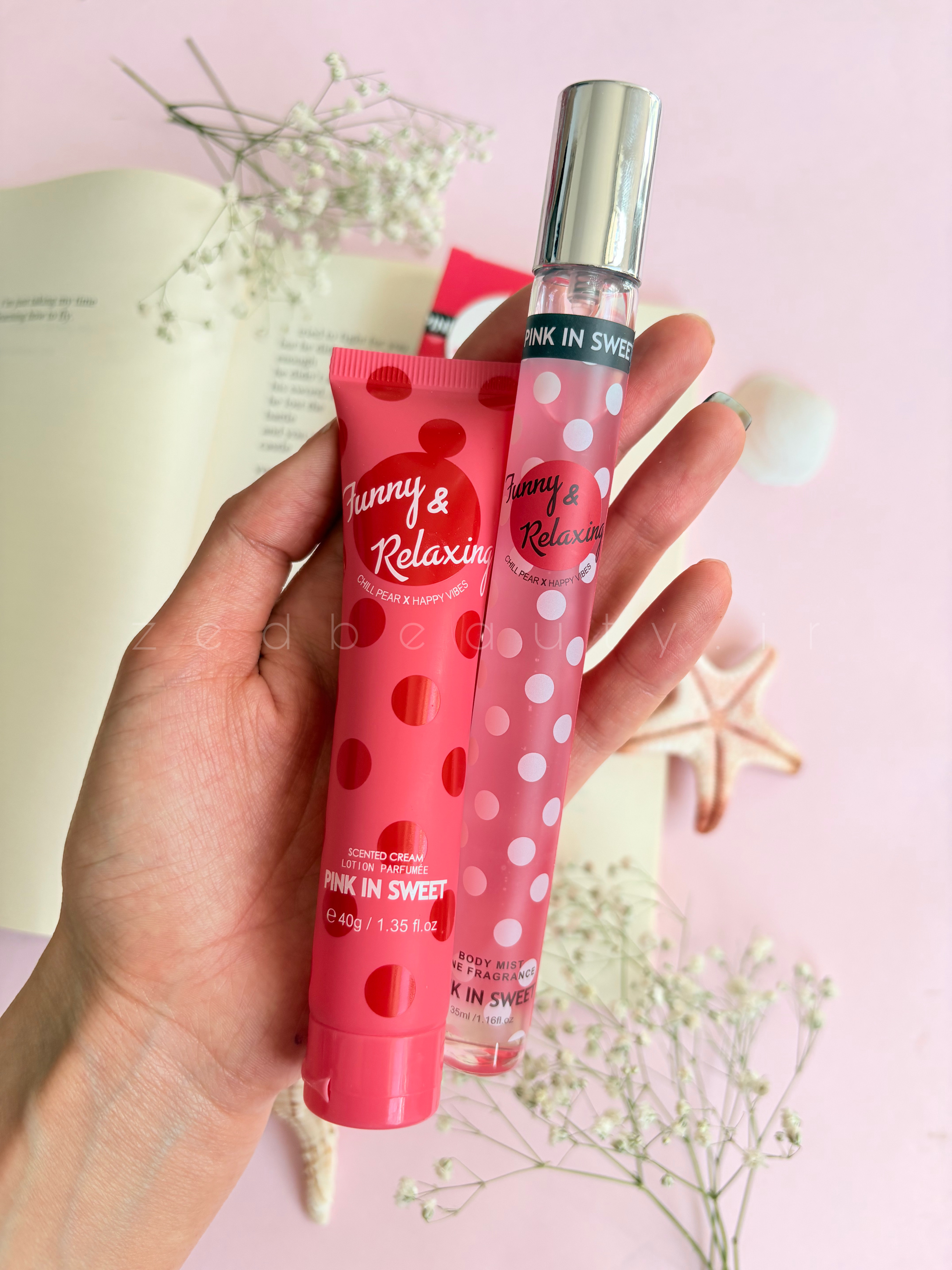 ست کرم بدن ۴۰ گرمی و بادی میست ۳۵ میل شکوفه وحشی pink in sweet