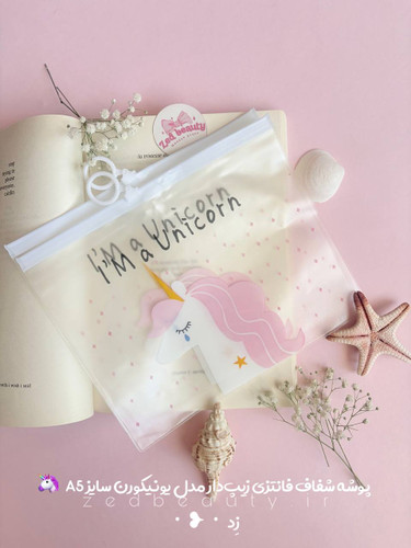 پوشه شفاف فانتزی زیپدار یونیکورن سایز A5 مناسب مدارک و وسایل کوچک
