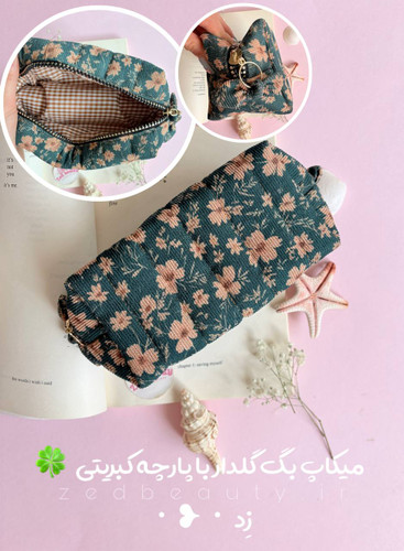 کیف آرایشی گلدار سبز پارچه کبریتی